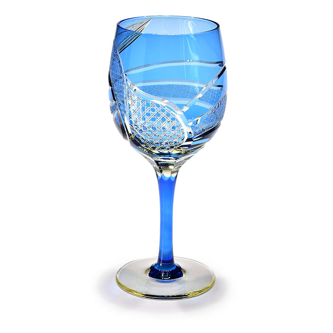 宙吹きとは、熔解炉で高温に熱せられた硝子を吹き竿の先に巻き取り、職人が直接息を吹き込むことにより中空成型していく技法です。型を使用しないため、それぞれ形の異なるものが出来上がります。華硝では、個々の宙吹き硝子の特徴を見極めた上で、その形状に最適な独特の紋様を施すことにより、世界でたった一つの芸術性の高い江戸切子として仕上げていきます。